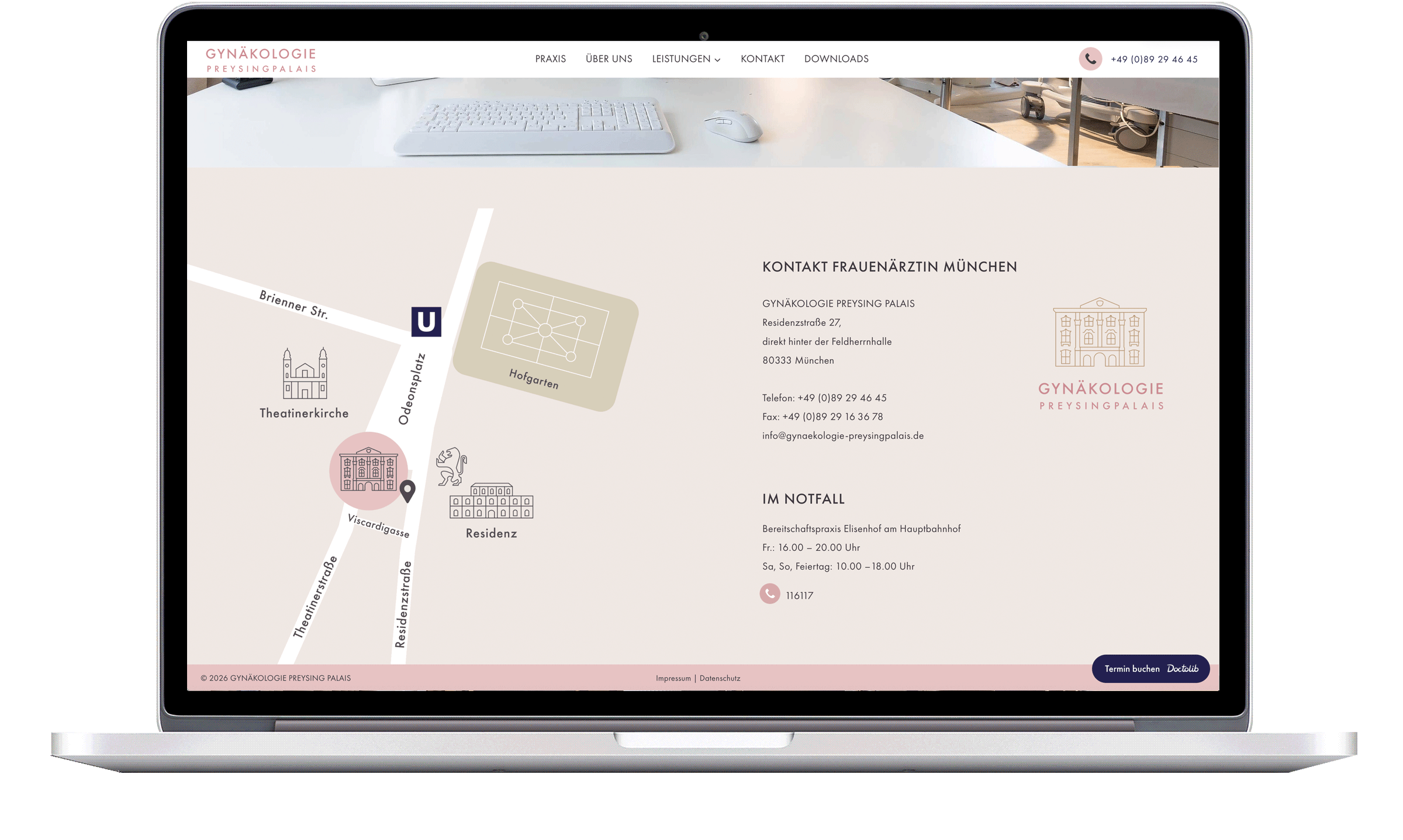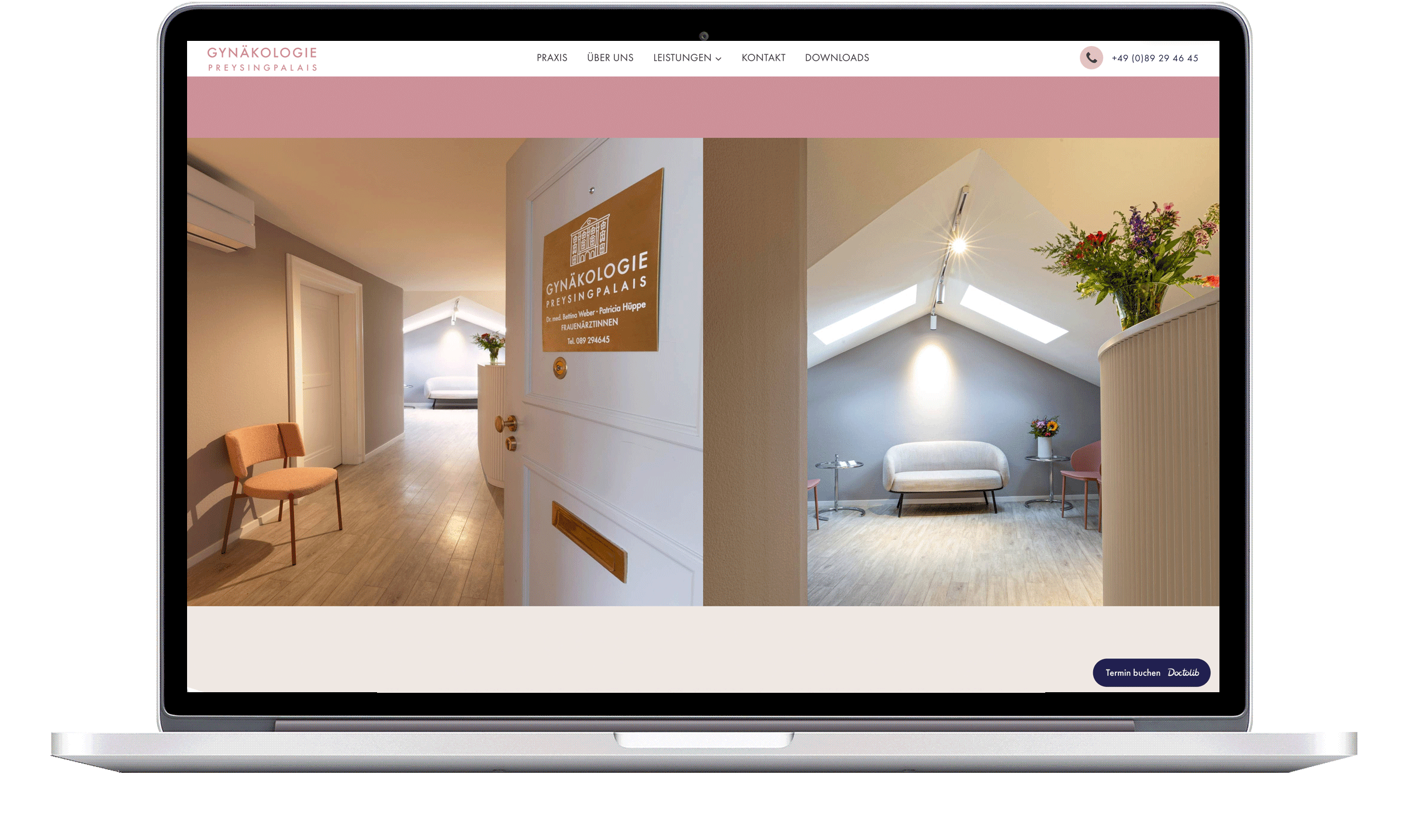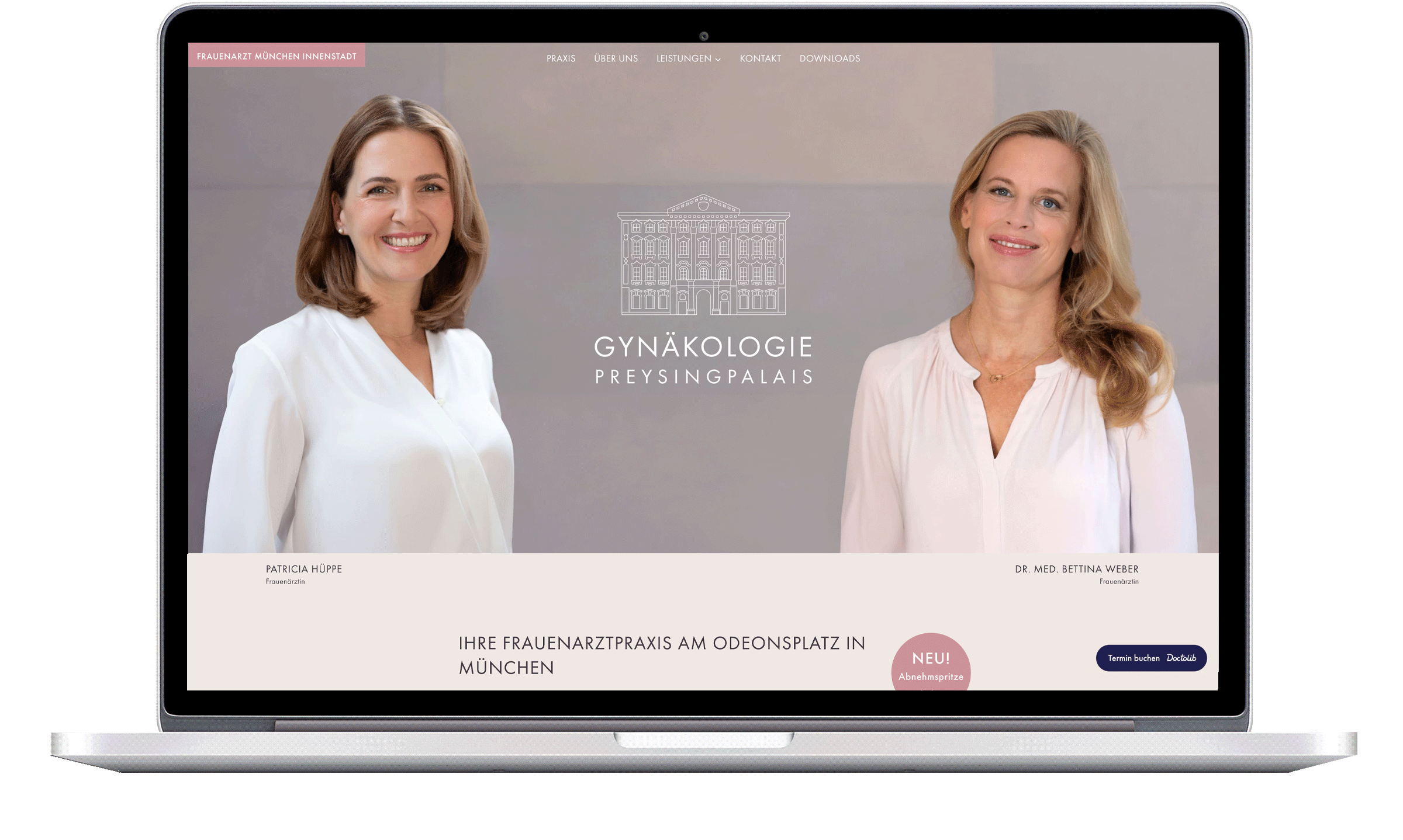 Komplette Betreuung von Logoentwicklung über Praxisschild, Google Profil, Portrait- und Praxisfotos, Website, Plakate, Flyer und mehr. frauenarzt-in-münchen.de